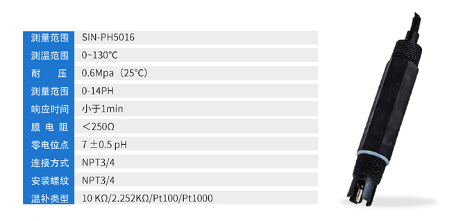 聯(lián)測SIN-pH5016 電極能耐130℃以上的高溫,并能耐強酸強堿侵蝕。廣泛應(yīng)用于廢水處理和包括采礦冶煉、造紙、紙漿、紡織品、石油化工、半導(dǎo)體電子工業(yè)流程、生物技術(shù)下游工程等領(lǐng)域。