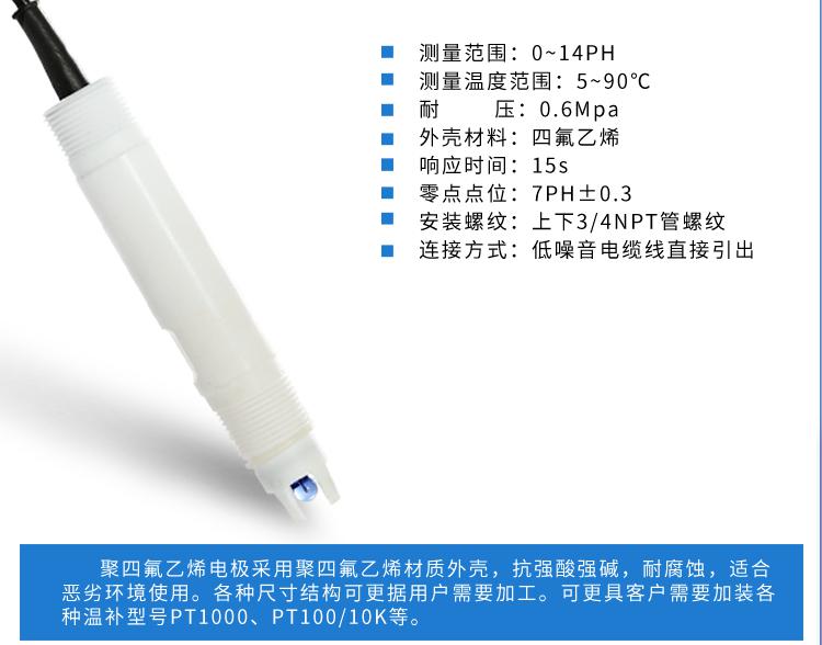 聯(lián)測SIN-5013A四氟電極應用于紡織印染、工業(yè)廢水、自來水廠、污水處理廠、電鍍廢水等腐蝕性較強的介質(zhì)。