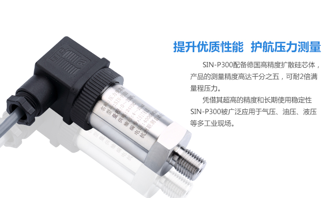 SIN-P300通用型壓力變送器德國(guó)進(jìn)口硅芯片,精度高性能穩(wěn)定;SIN-P300型通用型壓力變送器采用擴(kuò)散硅壓力芯體作為敏感元件,內(nèi)置處理電路將傳感器毫伏信號(hào)轉(zhuǎn)換成標(biāo)準(zhǔn)電壓﹑電流信號(hào)輸出,可直接與計(jì)算機(jī)、控制儀表﹑顯示儀表等相連。